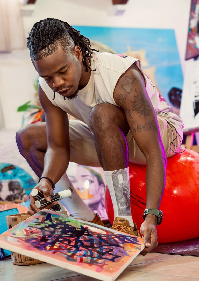 Il signe POCK, et son mot d'ordre est clair : Pock The World. Né en 1990 en Guadeloupe, cet artiste autodidacte a grandi entre les murs tagués de son île et les questionnements d'une génération qui cherche à se définir. Aujourd'hui, son univers déborde de toutes les cases.